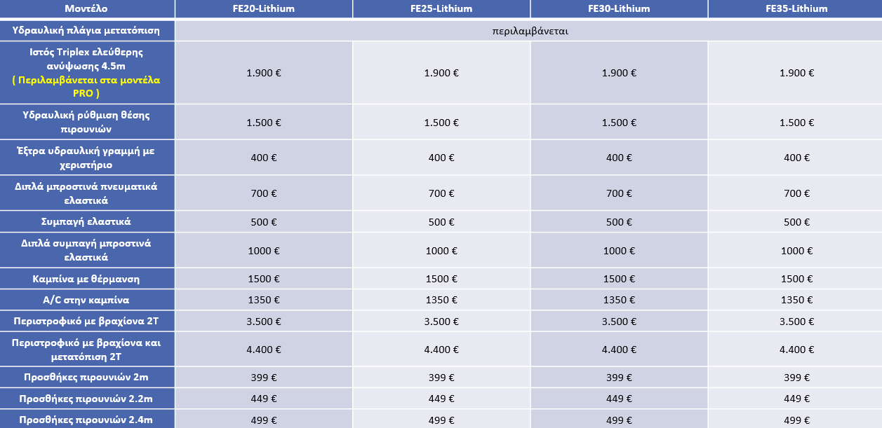 ηλεκτρικο κλαρκ με ενισχυμενη μπαταρια λιθιου τιμες FE30 lithium