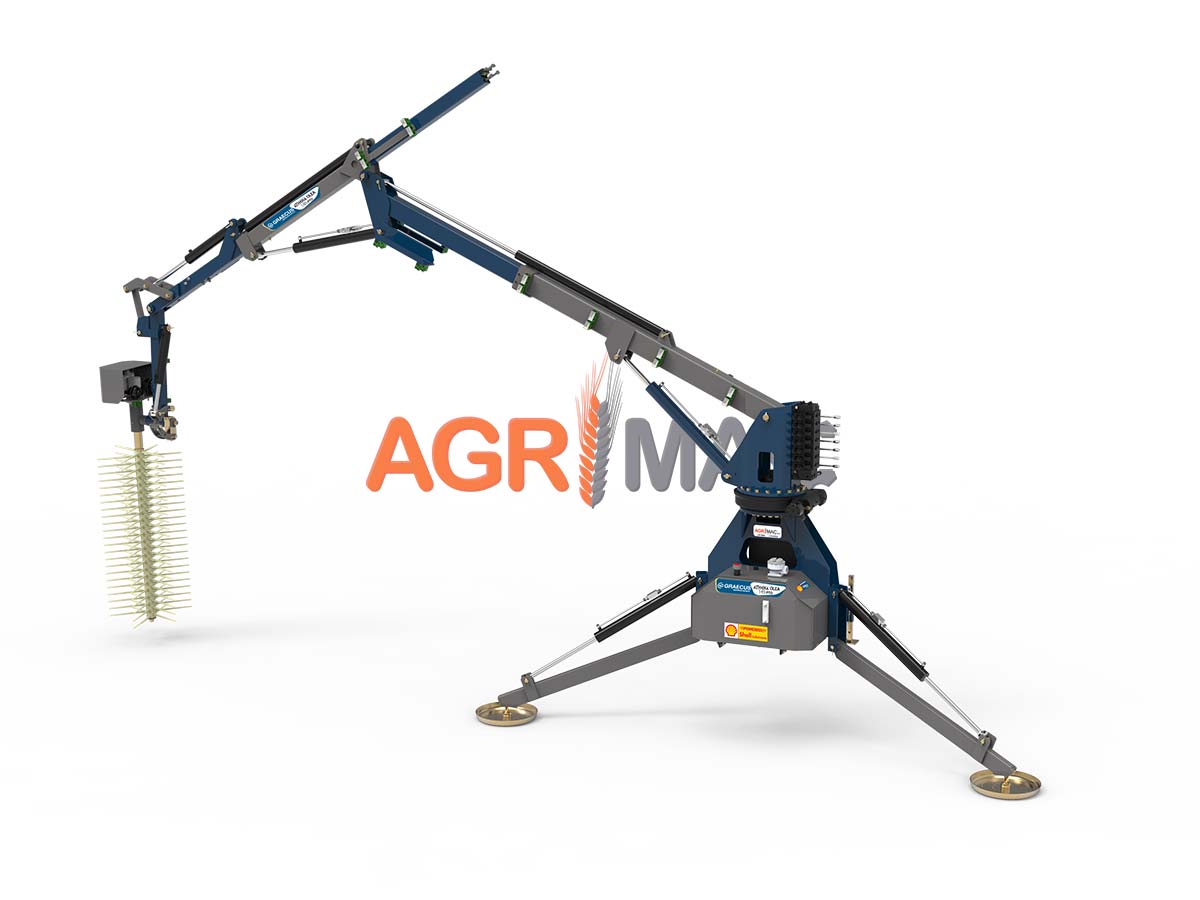 - Διαθέτει σύστημα αζώτου για την αποφυγή μετάδοσης κραδασμών από την κεφαλή στο βραχίονα, ρύθμιση της ταχύτητας για όλες τις κινήσεις και ρύθμιση της τάσης της χτένας ανάλογα με τον τύπο της ελιάς, την ωριμότητα και την παλινδρομική κίνηση της χτένας.