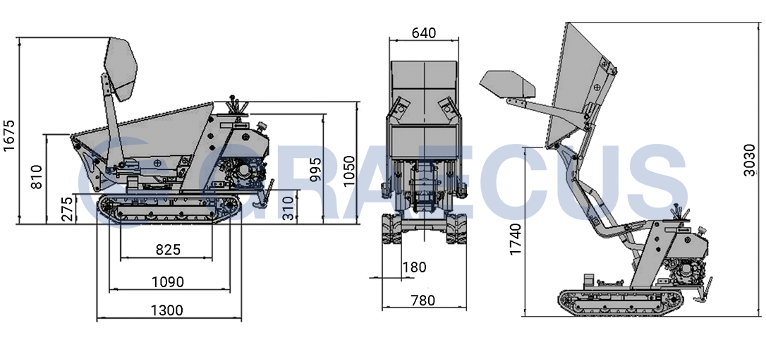 - Οι ερπύστριες επιτρέπουν τη χρήση του σε έως και 30% κλίση. Η ικανότητα φόρτωσης και μεταφοράς είναι 800kg.