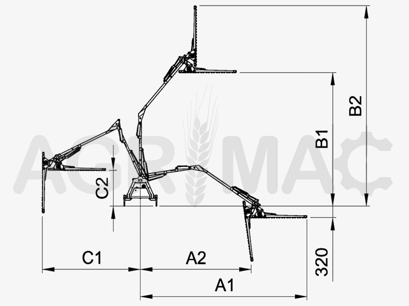 Βραχίονας κατασκευασμένος ώστε να λειτουργεί και στις δύο πλευρές (δεξιά – αριστερά) με δυνατότητα χρήσης και στο εμπρόσθιο τμήμα του τρακτέρ. Πολύ εύκολο στην χρήση υδραυλικά πτυσσόμενο μπράτσο 3,5 μέτρων ιδανικό για την διατήρηση μικρών θάμνων, δέντρων και άλλων ειδών βλάστησης με μέγιστη διάμετρο κοπής 2-3cm. Η διπλή υδραυλική αντλία επιτρέπει αποτελεσματικό κόψιμο με ταυτόχρονη κίνηση του βραχίονα. Αναστρέψιμος σκελετός 4 υδραυλικών κινήσεων. Απομακρυσμένος έλεγχος με χειριστήριο 5 μοχλών. Μπορεί να χρησιμοποιηθεί χωρίς καμπίνα με ασφάλεια ακόμα και στα πιο μικρά τρακτέρ, επειδή, σε αντίθεση με ένα καταστροφέα δεν εκτοξεύει υψηλής ταχύτητας υπολείμματα.